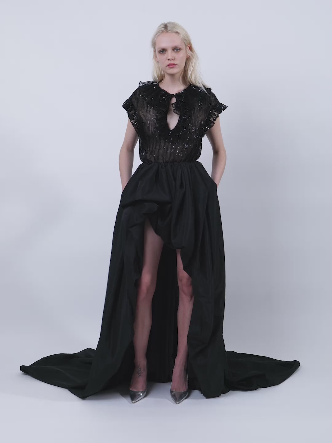 The Este ruffle top in black